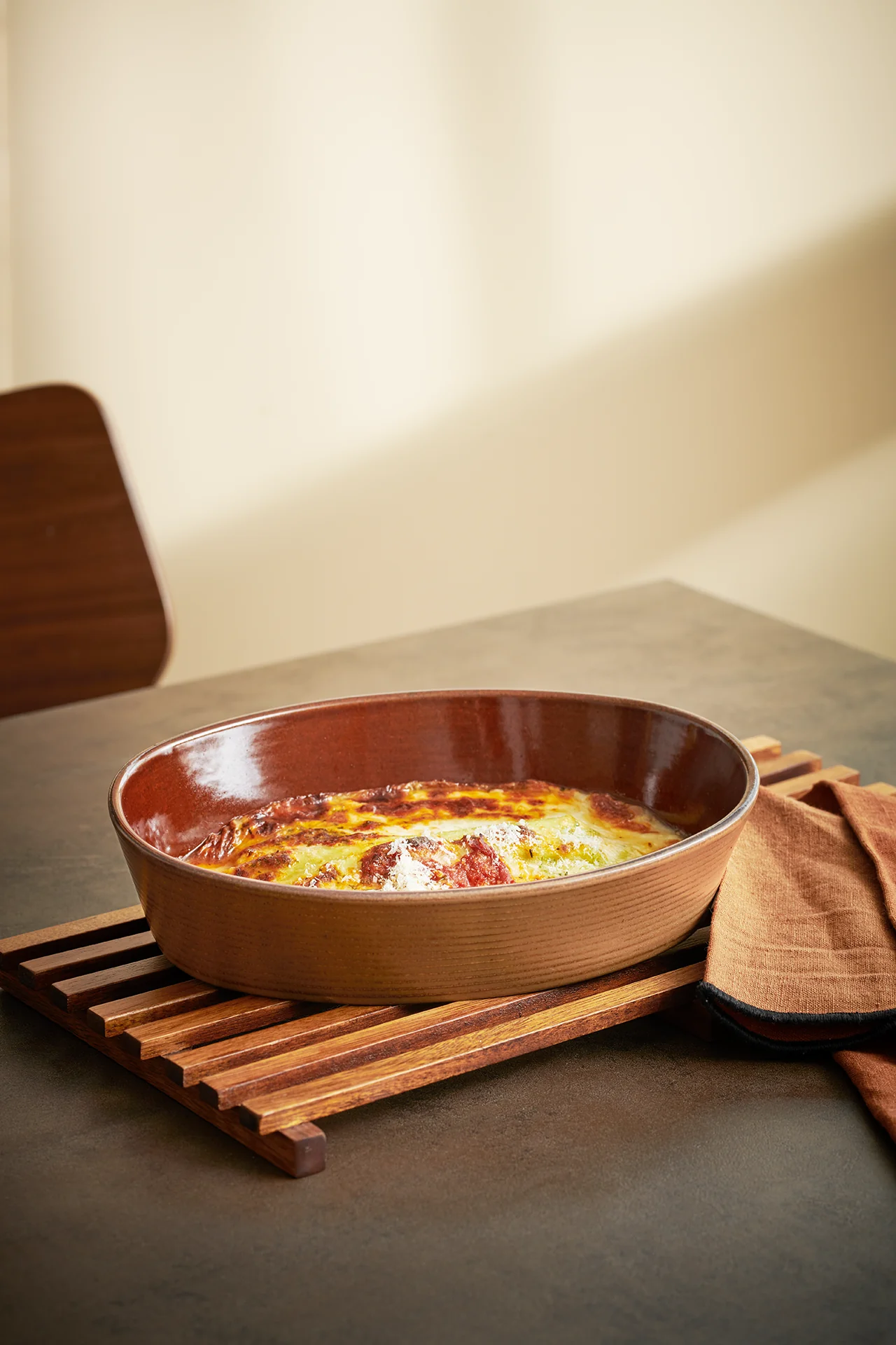 Die Serie kitchen’art bietet eine Auswahl an runden und ovalen Ofenformen, die Qualität und Design miteinander verbinden. Dank der Effektglasur in braun oder schwarz, die bei jedem Brand anders reagiert, hat jede Ofenform einen individuellen Charakter. Dies macht sie perfekt zum Anrichten von z. B. Gratins, Beilagen oder Soufflés auf dem Esstisch. Geeignet für Spülmaschine, Mikrowelle, Gefrierfach und Ofen. Das glänzende Finish im Innenbereich erleichtert die Reinigung.